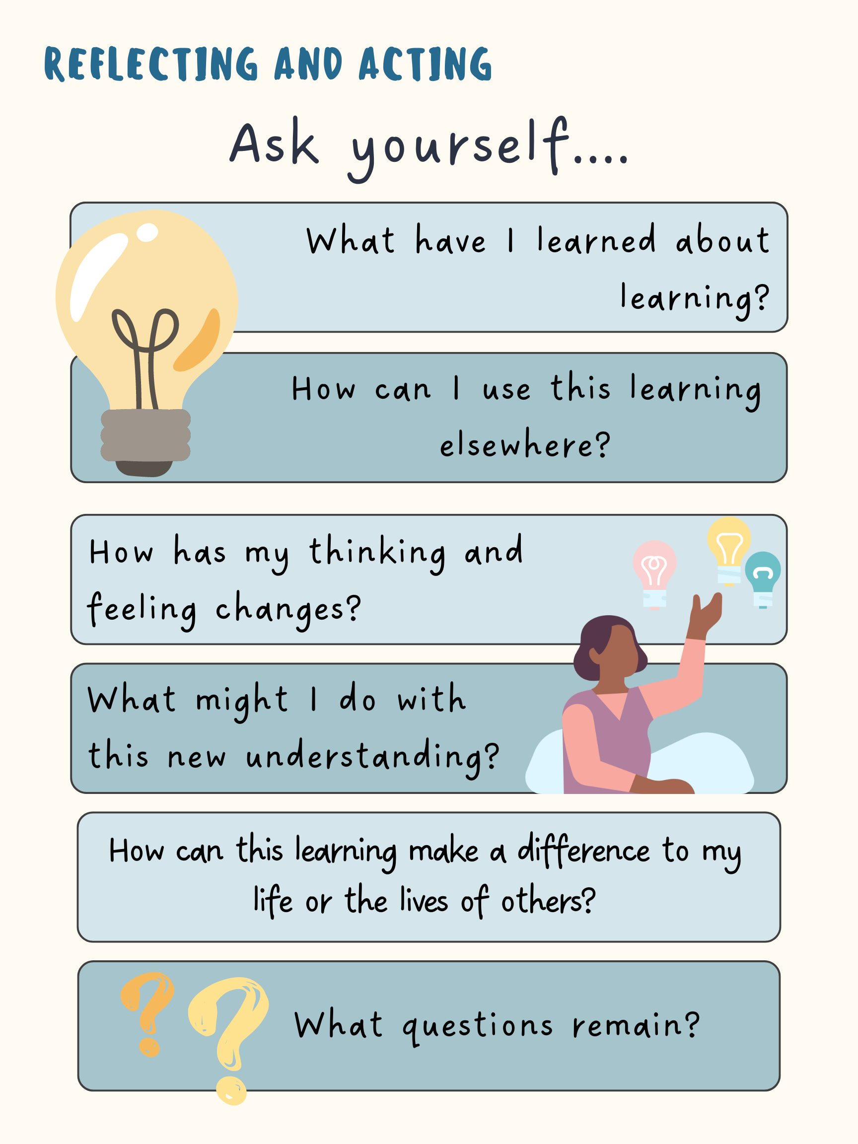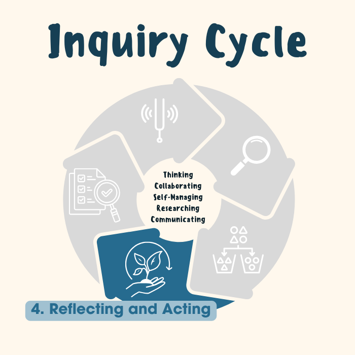 In the Reflecting and Acting stage, students think about what they have learned and consider how to apply it. They reflect on their findings, evaluate their inquiry process, and identify areas for improvement. Teachers encourage students to take meaningful action based on their new understanding, such as starting a community project or raising awareness. This stage emphasises the importance of reflection, real-world application, and making a positive impact. |