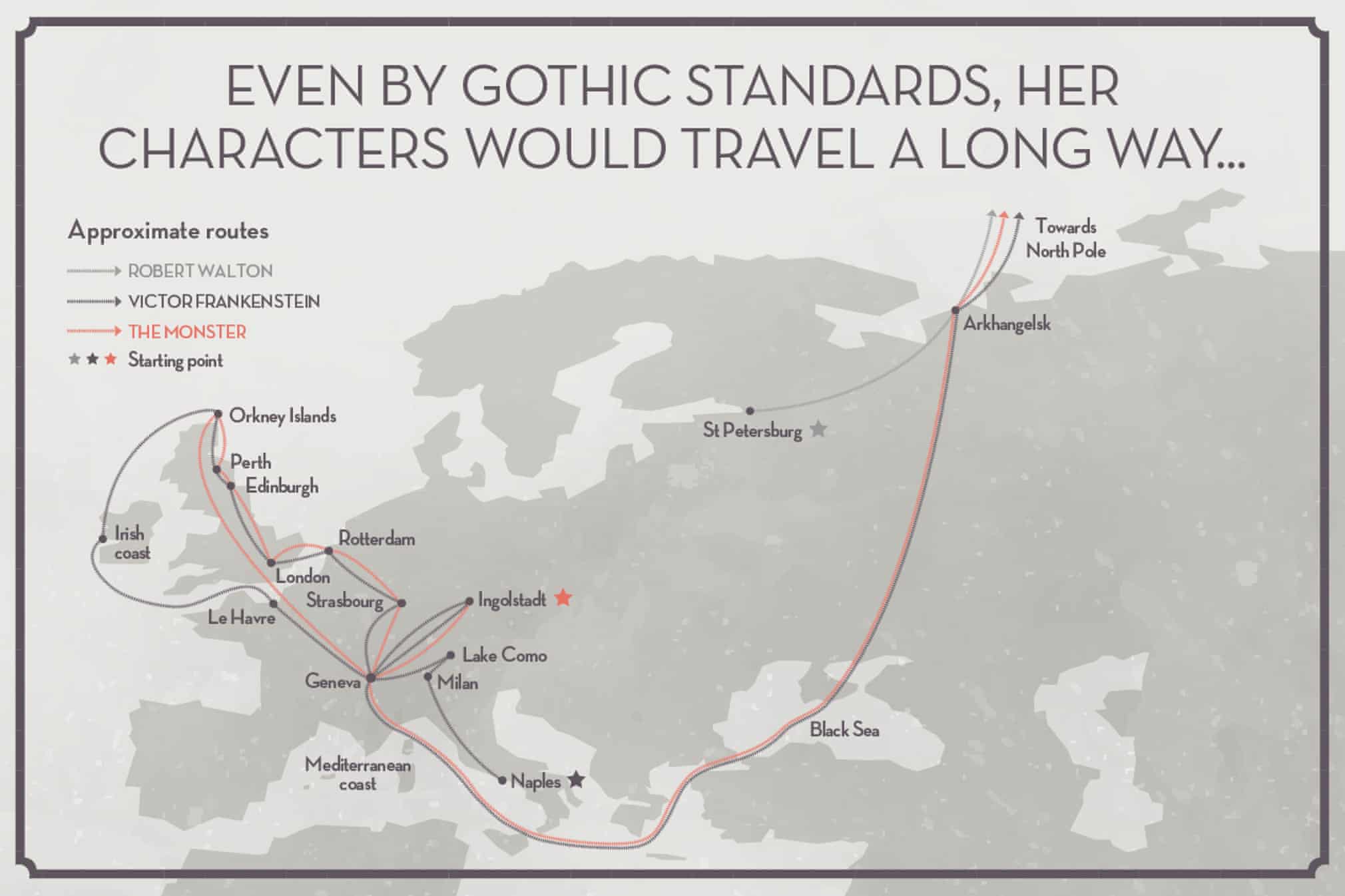 Frost, A., Gallardo, S., & Fuentes, E. (2018). Even by Gothic standards, her characters would travel a long way [Online image] Even by Gothic standards, her characters would travel a long way]. In The Guardian2018. https://www.theguardian.com/books/gallery/2018/jan/13/mary-shelleys-frankenstein-in-charts